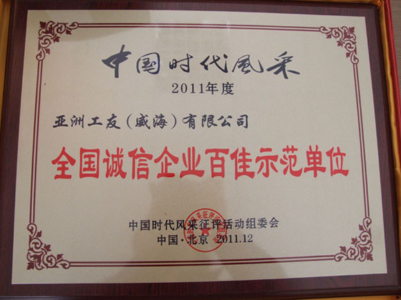 公司被授予“全國誠信企業(yè)百佳示范單位”稱號(hào)